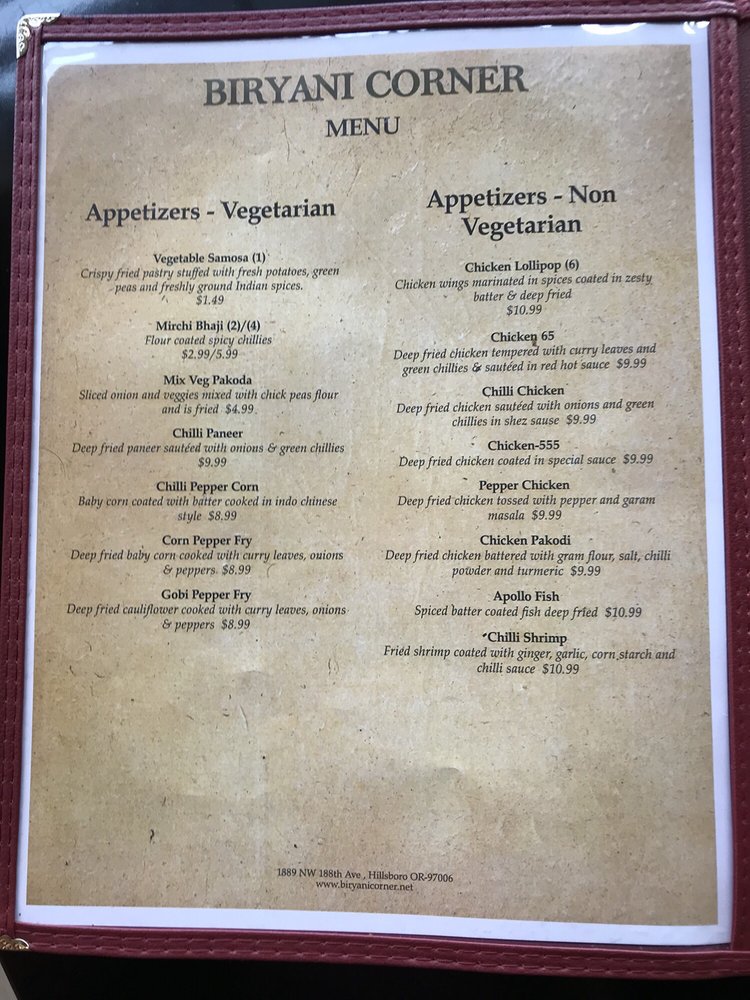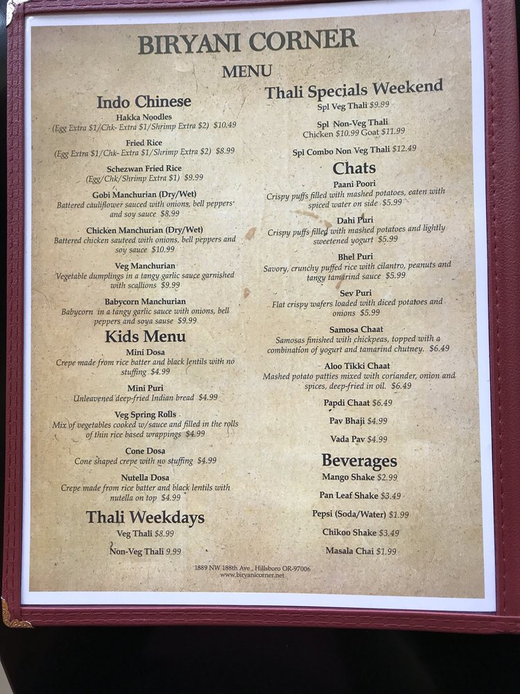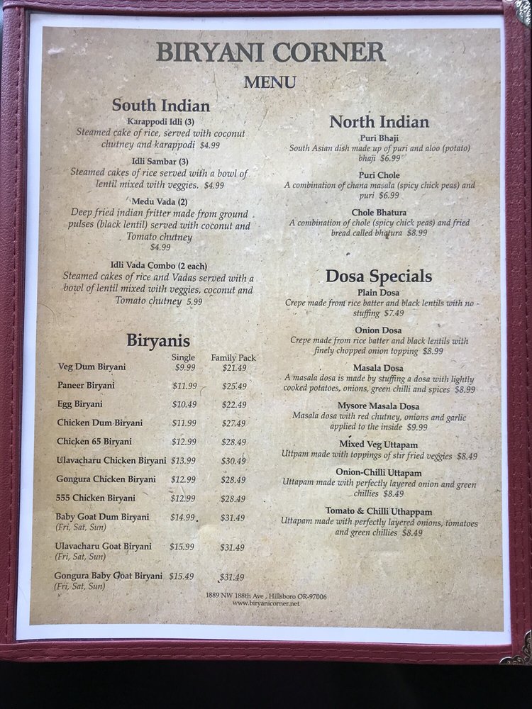 Welcome to Biryani Corner, where the vibrant flavors of Indian cuisine come alive! Nestled in Hillsboro, Oregon, this delightful eatery is celebrated for its mouthwatering biryani and an array of authentic dishes that cater to every palate. Vegetarians will find plenty of options alongside classic favorites like chicken tikka masala and the succulent mutton biryani. The restaurant's casual ambiance coupled with outdoor seating makes it a perfect spot for relaxing meals or fun gatherings.